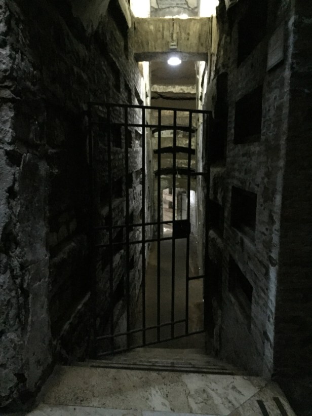 Not included in these pictures: several of the niches in the walls were larger than the others and rounded at the top. One of the other people on our tour asked the guide if these were some sort of special niche for wealthier burials, which seemed like a reasonable assumption. The opposite was actually true. According to our guide, these larger niches were used for the burials of poorer individuals, who were packed in on top of each other before the niche was sealed off.