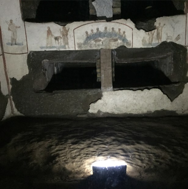 Also not included in the pictures: deep underground there’s a room where several ancient Christian bishops had been entombed behind slabs inscribed with their names. This room was later turned into a chapel and pilgrimage site, which it still is today. Over the door leaving the room is what appears to be a faded prayer in Latin, of which the only word I managed to “translate” was the final “Amen.”