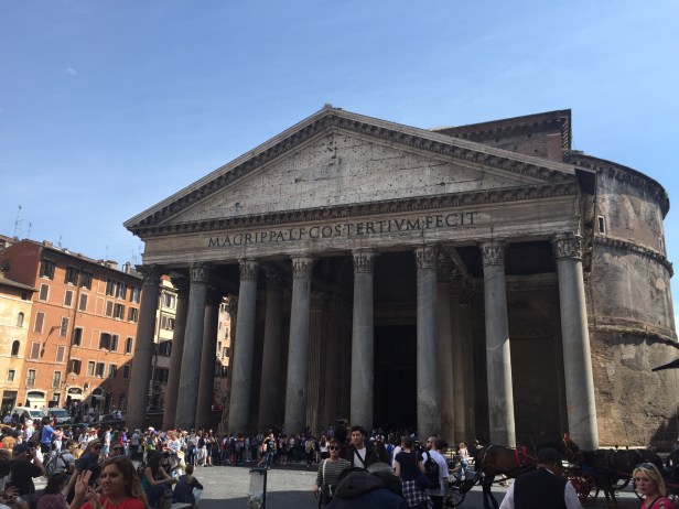 There’s little more than ruins left of most Roman temples. A few columns, maybe. Here and there some stairs or maybe even a wall remain, crumbling. But the Pantheon is not only still standing, it’s flourishing after 1890 years (of course, not still in it’s capacity as a pagan worship site).