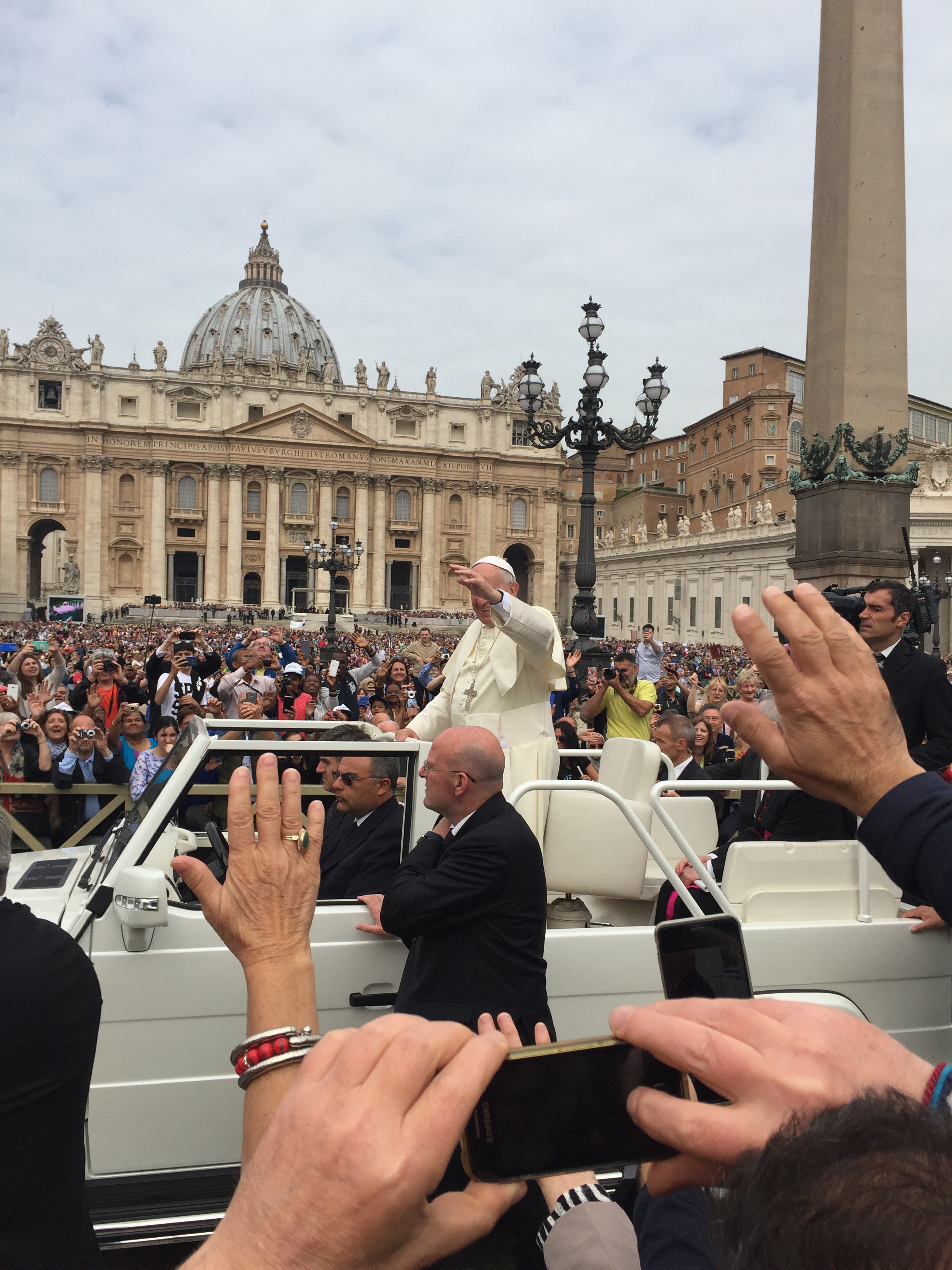 Catholic or not, if you make it to the Vatican, you might as well try to see the Pope. He addresses (and blesses) the crowd every Wednesday (admission is free) from the steps of St. Peter’s. A word of advice: if you can bear standing for an hour+, the best spot to actually see him isn’t in the chairs. During the blessing he’ll still be pretty far away, even if you manage to sit in the front row. Instead, try to stand directly behind the barrier behind the chairs. He’ll end up driving close to this spot in his cart. When we were there, I was probably only six feet or so from him at one point. Nobody in the chairs was nearly that close.